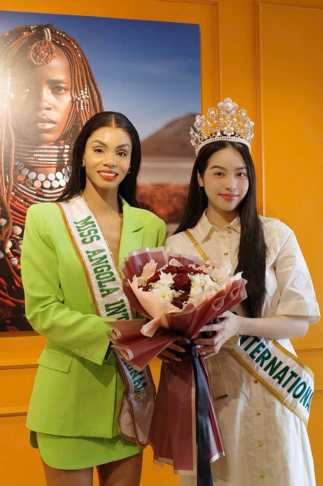 Ngay upon đến Angola, Thanh Thủy đã được ban tổ chức Hoa hậu Quốc tế Angola và người dân địa phương đón tiếp nồng nhiệt. Cô cũng có cơ hội gặp gỡ và đồng hành cùng các đại diện của các quốc gia khác như Nigeria, Angola và Brazil trong các sự kiện tại đây. Giám đốc truyền thông của Hoa hậu Quốc tế, ông Stephan Diaz, cũng đồng hành cùng Thanh Thủy trong chuyến công tác này.